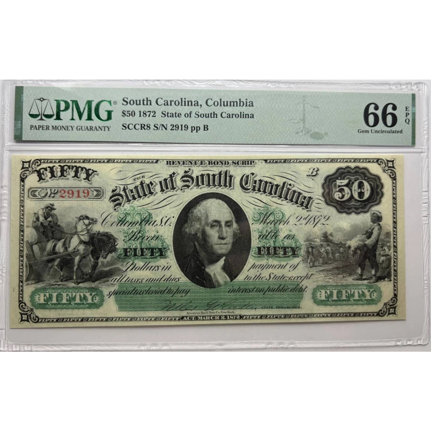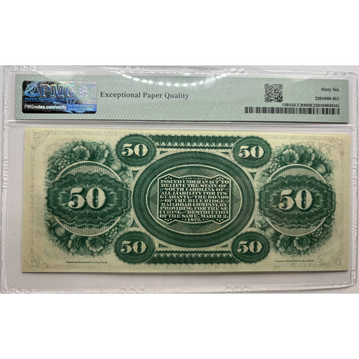 South Carolina Columbia Colonial Currency $50 Note (PMG 66 EPQ)