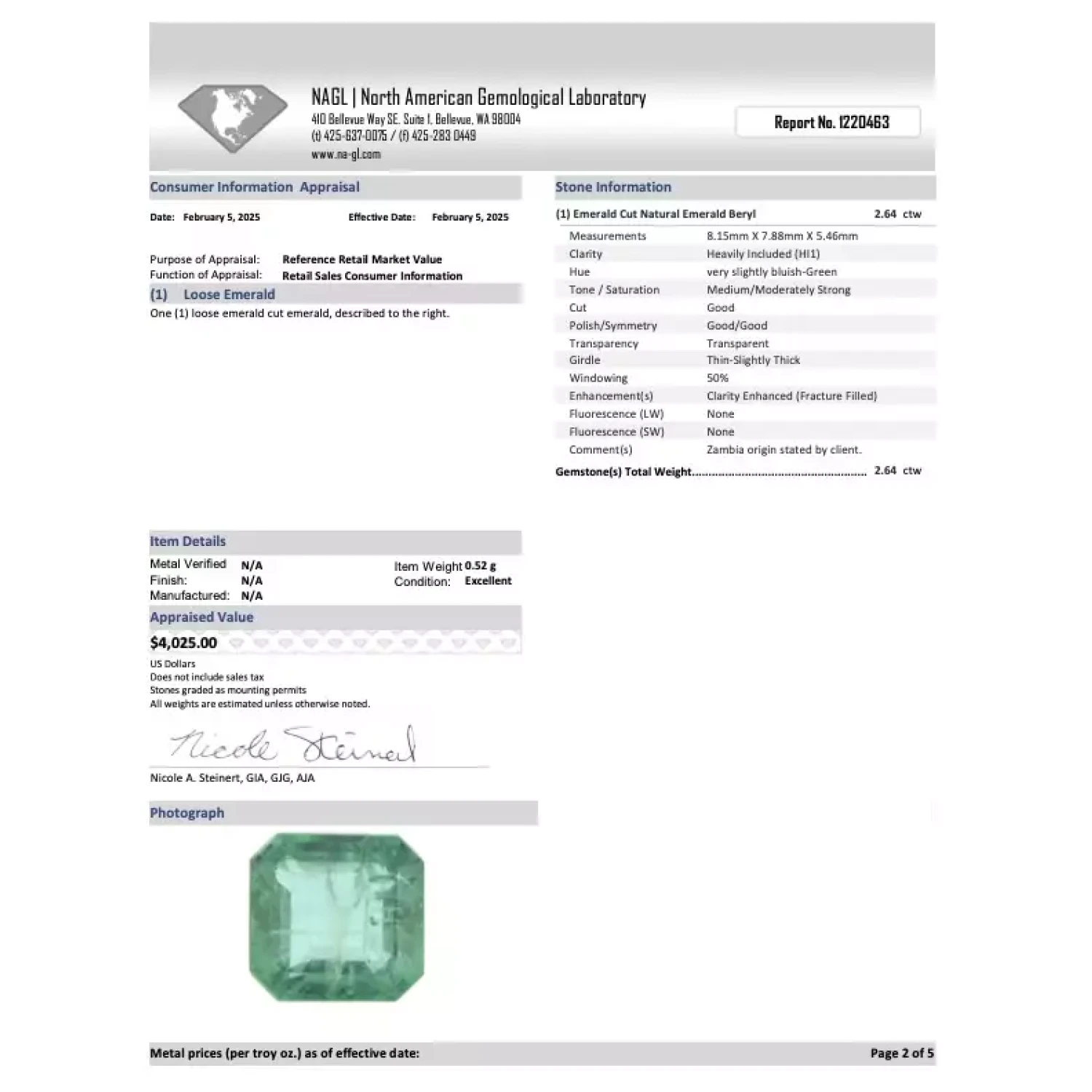 | Gem Certification Number | 1220463 |