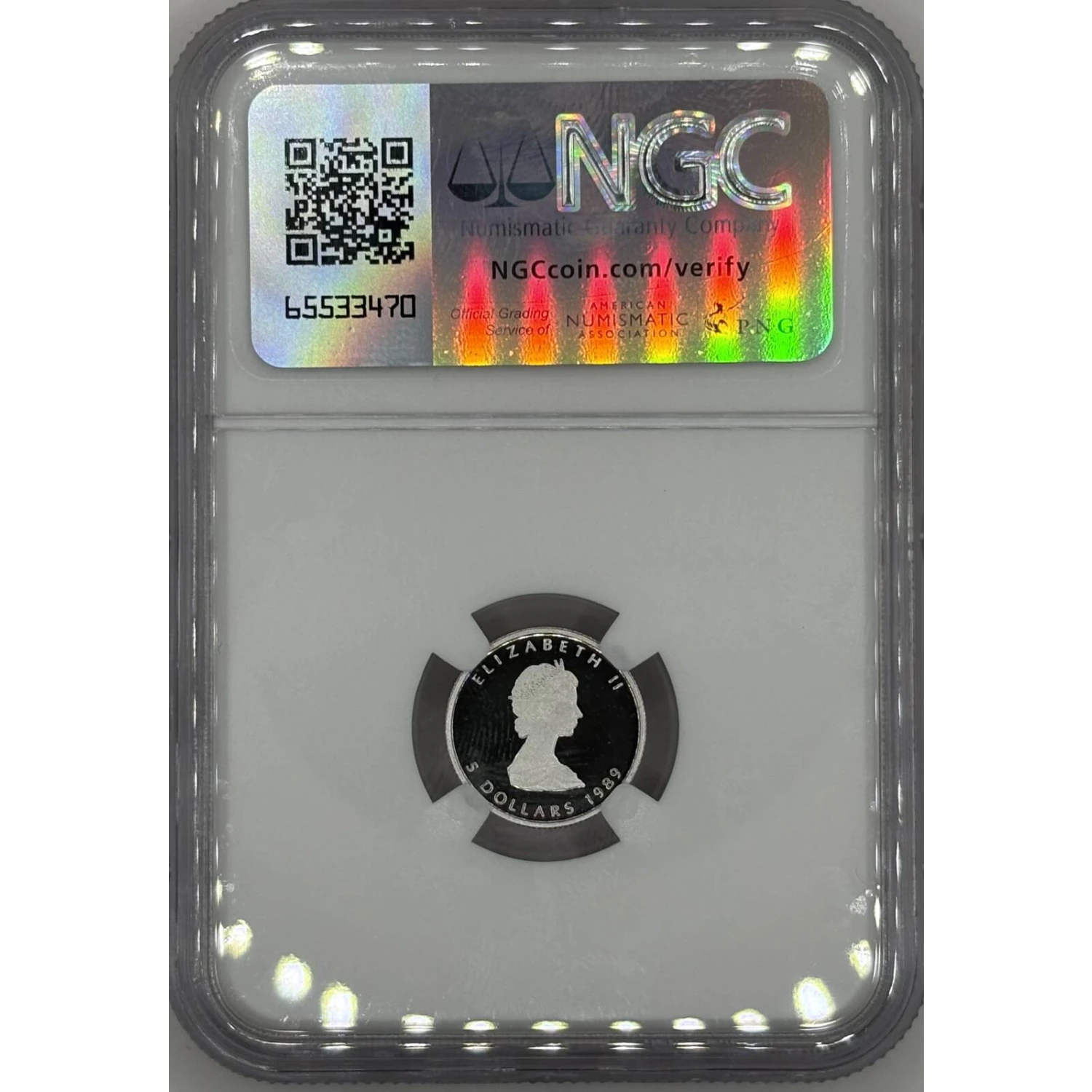Introducing the captivating 1989 Canada Platinum 5 Dollars NGC PF-70 KM#164 numismatic coin, a remarkable piece of Canadian coinage history. This stunning platinum coin is a true testament to the country's rich numismatic heritage and the skilled craftsmanship of its minting professionals.