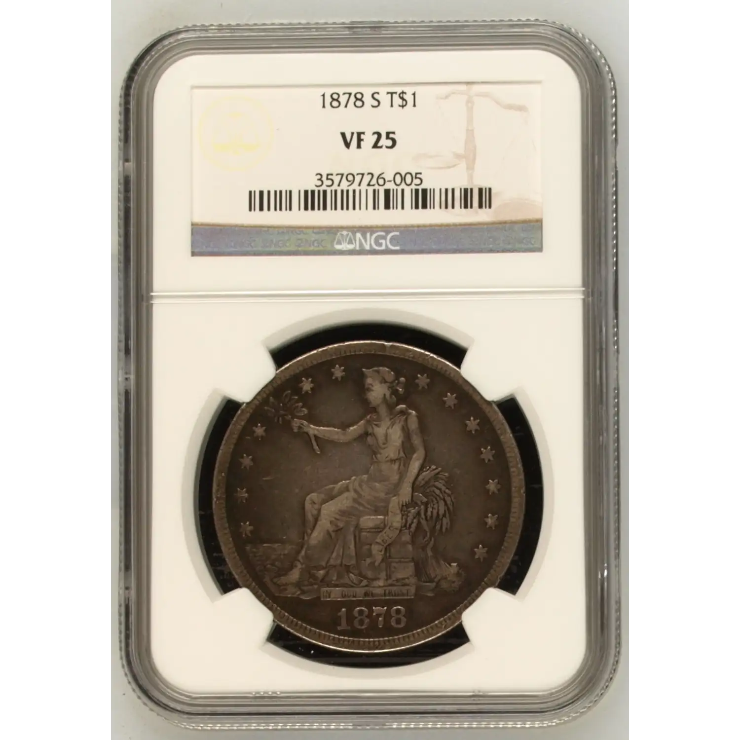 The 1878 S Silver Dollars Trade Dollars, certified by the prestigious NGC (Numismatic Guaranty Corporation) in Very Fine (VF-25) condition, is a remarkable piece that has stood the test of time. Minted in San Francisco, this coin was part of the Trade Dollar series, a unique denomination designed to facilitate international trade and commerce during the late 19th century.
