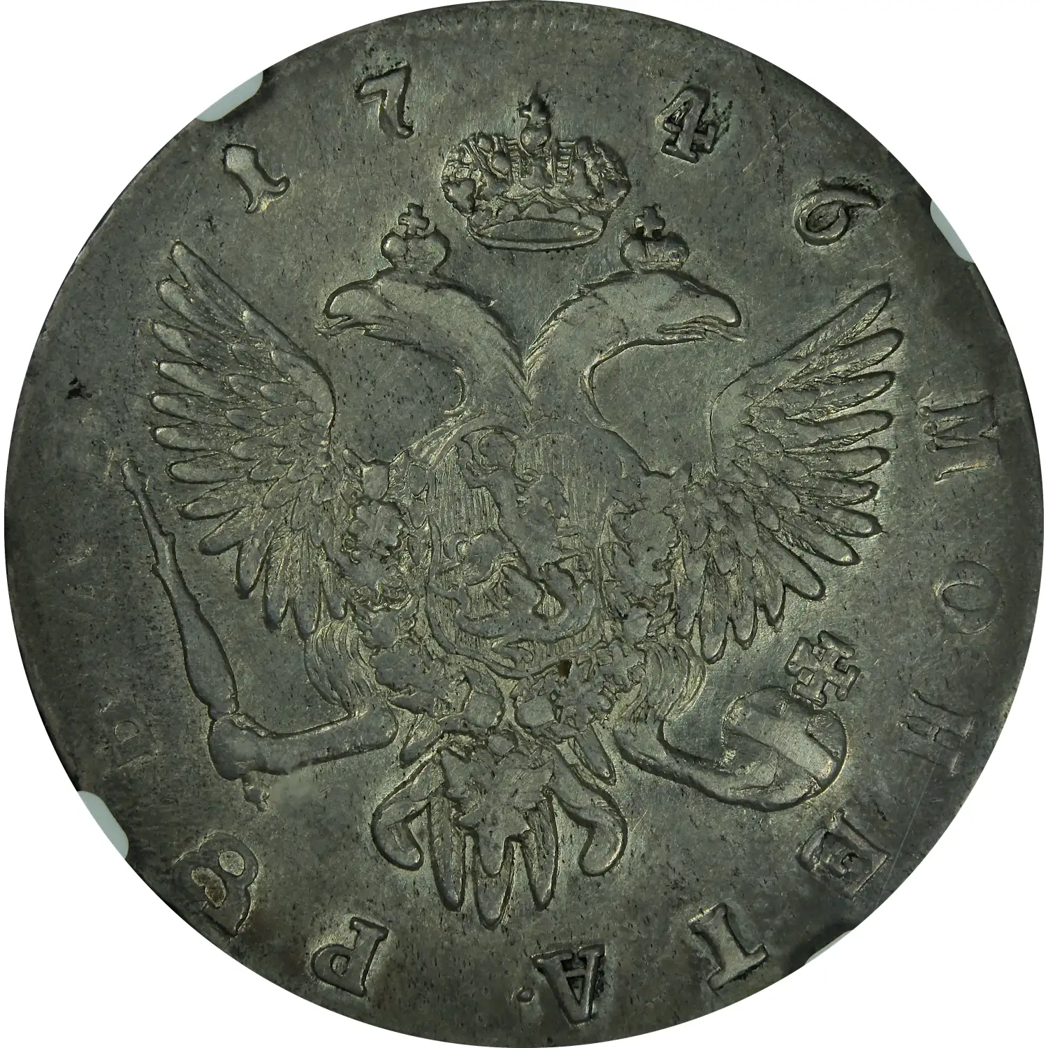 Struck in the year 1746, this silver rouble features the iconic crowned bust of Elizabeth on the obverse, capturing the grace and power of her leadership. The reverse showcases the double-headed eagle, a timeless symbol of the Russian state, surrounded by intricate designs and lettering that add to the coin's visual allure.