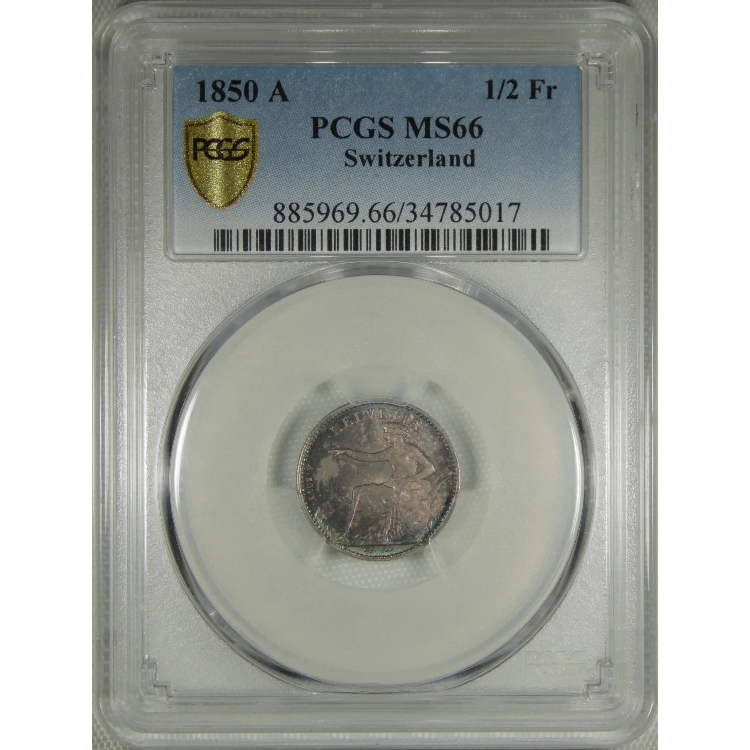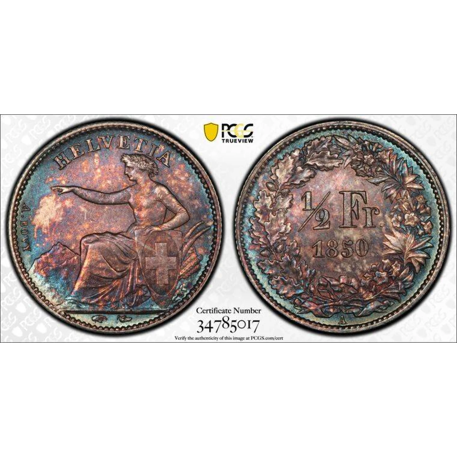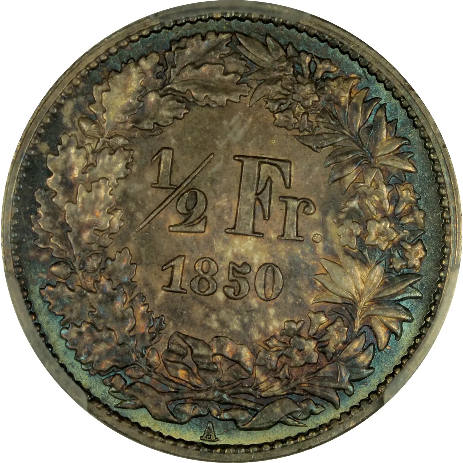 The 1850-A Switzerland ½ Franc marks the introduction of the Swiss federal coinage following the 1848 Constitution. Struck at the Paris Mint (“A”), this issue established the Seated Helvetia design that would define Swiss silver coinage for decades.