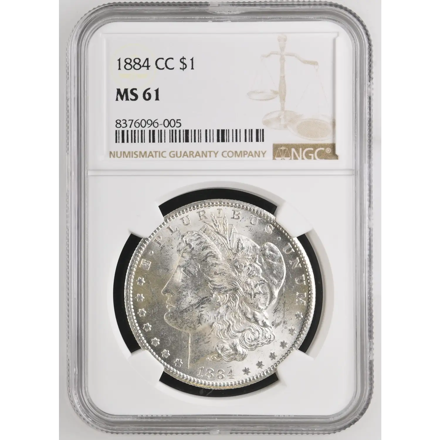 The 1884-CC Morgan Dollar was struck at the Carson City Mint with a mintage of 1,136,000. Many examples survived in Treasury storage and later entered the market through the GSA sales.