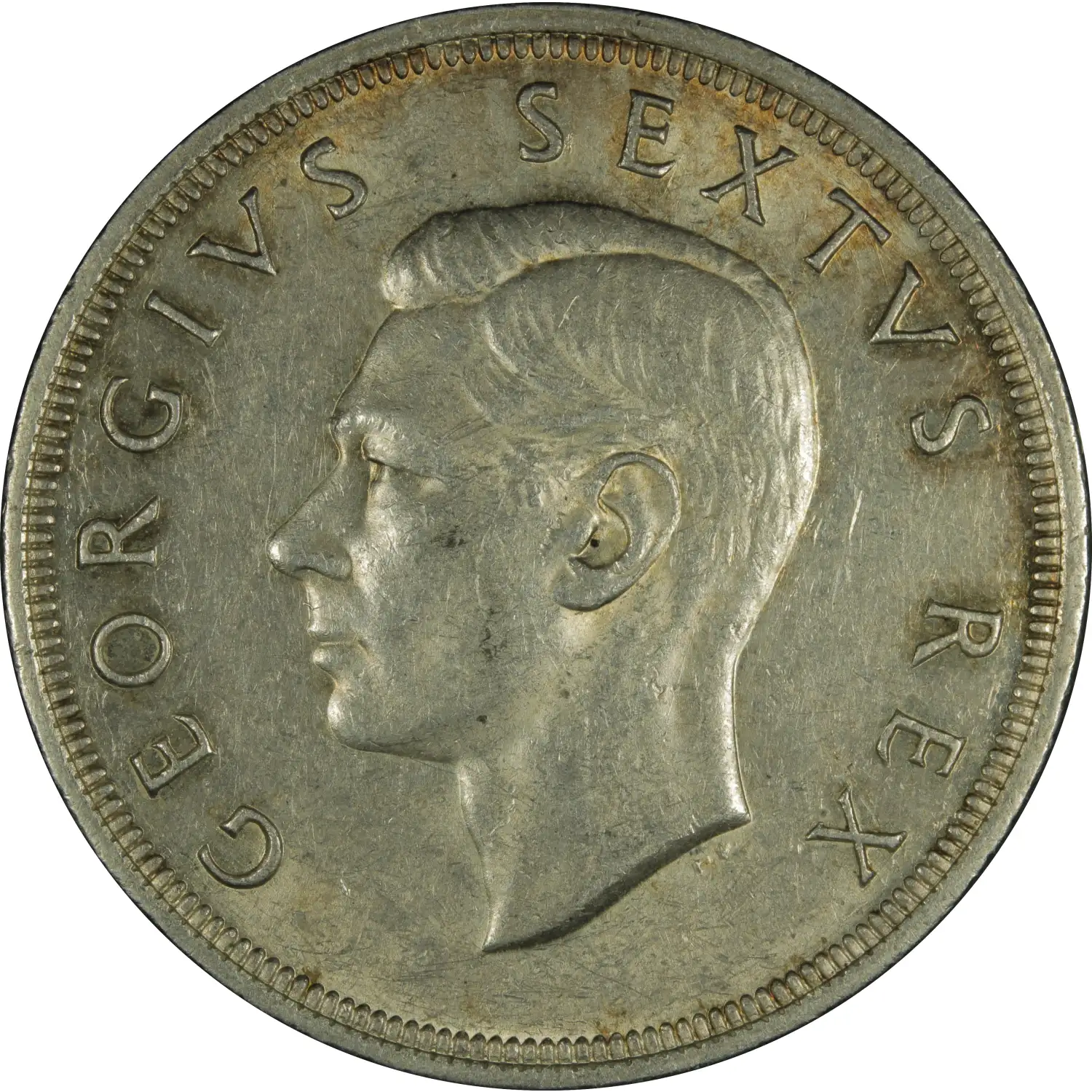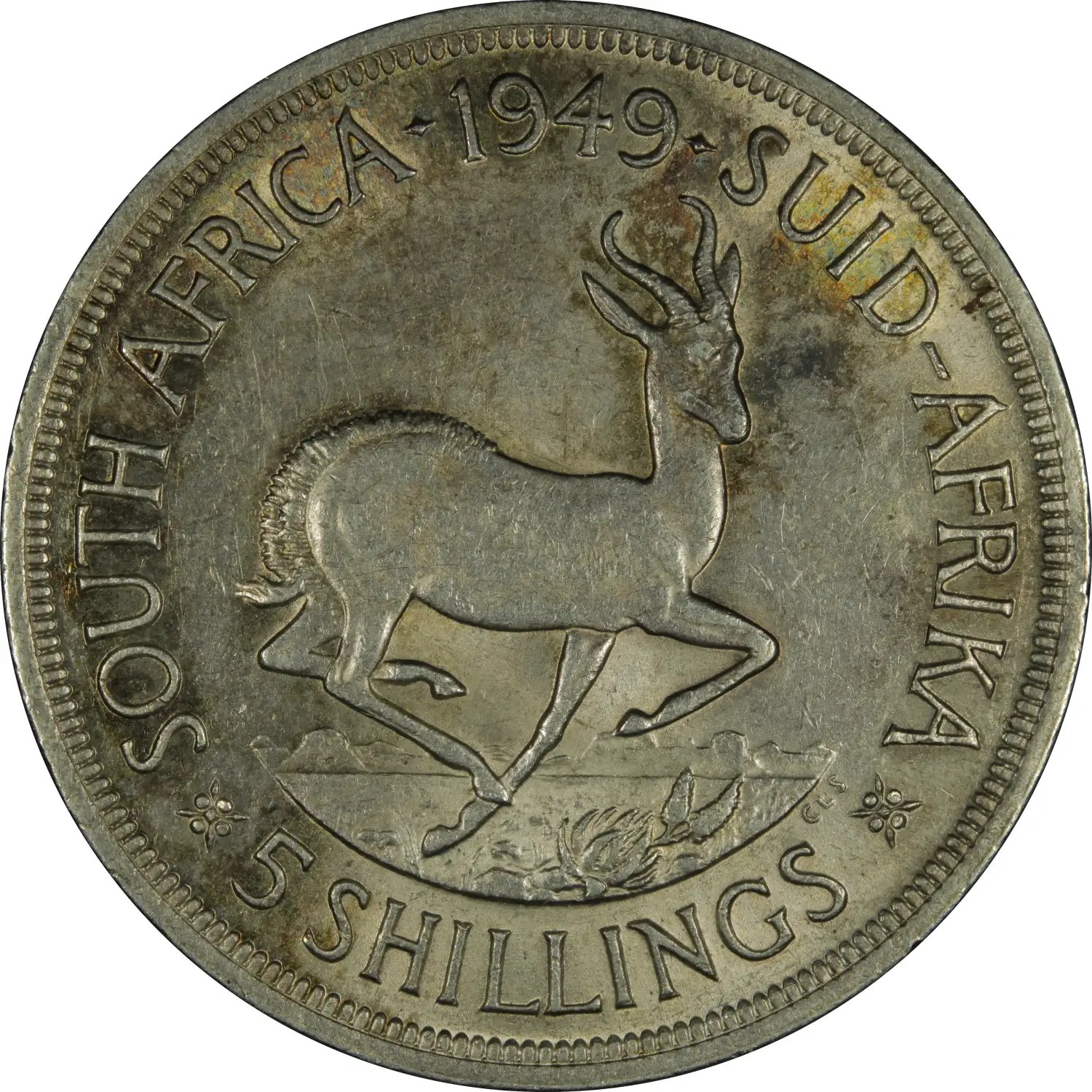 The 1949 South Africa 5 Shillings was struck at the Pretoria Mint during the reign of King George VI. This issue is part of the KM-40.1 series (1948–1950), known for its large crown format and springbok reverse design.