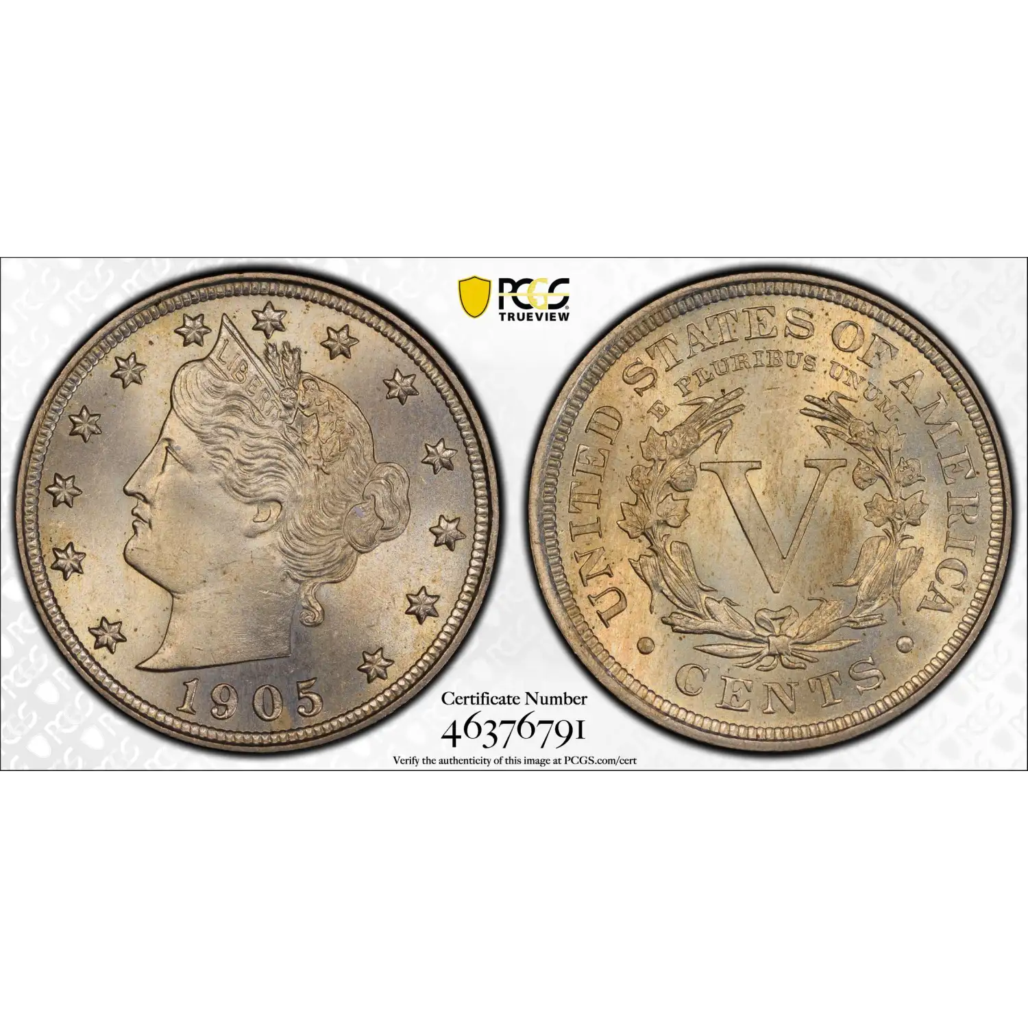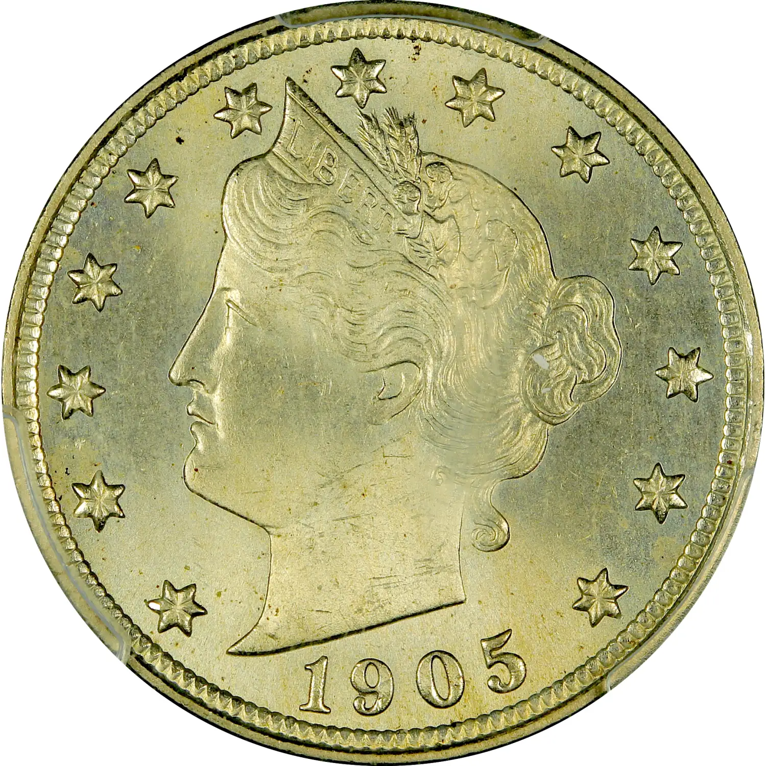 The 1905 Liberty Head Nickel was struck at the Philadelphia Mint with a mintage of 29,825,124. This date is common in Mint State, with many well-preserved examples available.