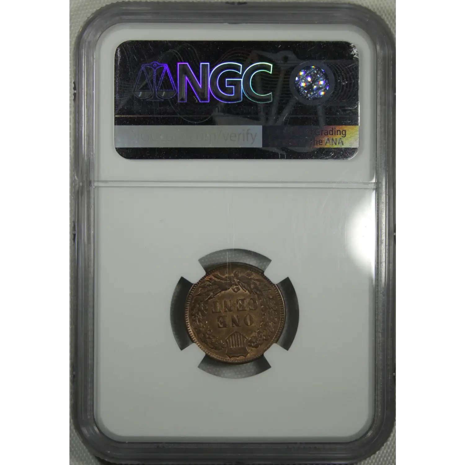 MS-62 RB indicates a Mint State coin with no wear, moderate contact marks, and a mix of original red and brown copper surfaces.