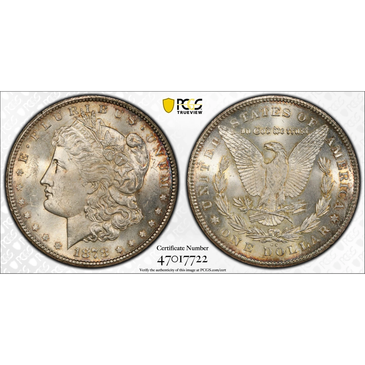 The 1878-CC Morgan Silver Dollar was struck at the Carson City Mint in the first year of Morgan dollar production. Carson City issues are notable for their comparatively low mintages and strong collector demand.