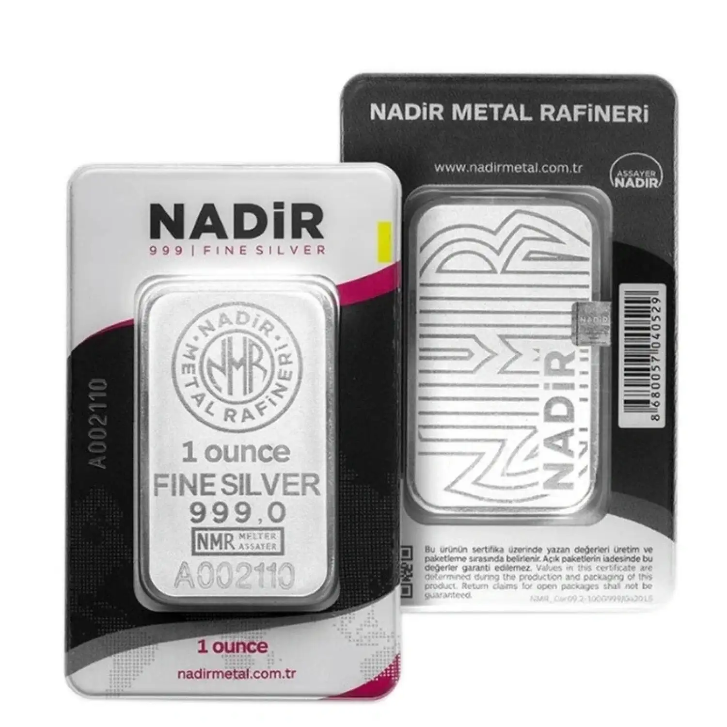 1 oz Nadir Refineri Carded Silver Bars. In Assay Cards.