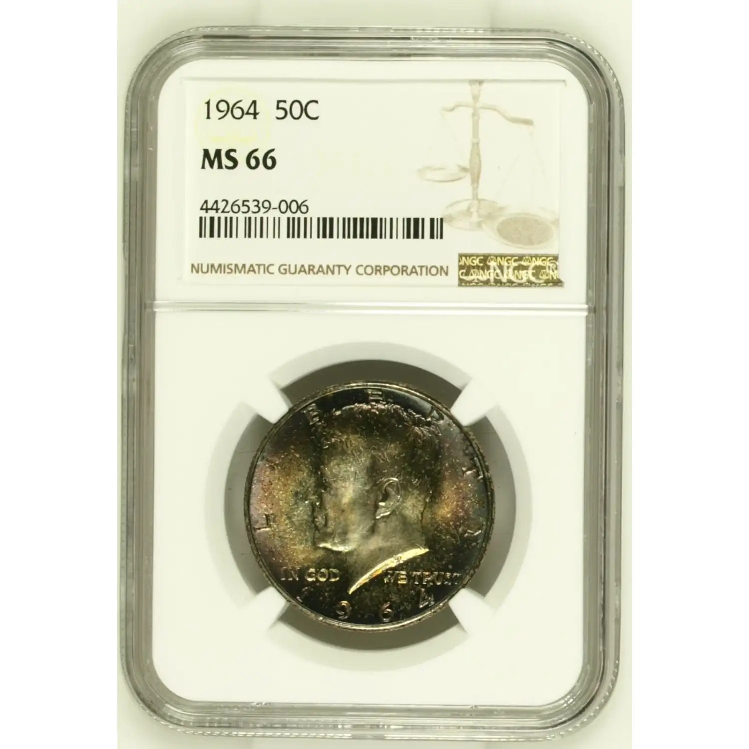1964 Kennedy Half Dollar NGC MS66 Toned